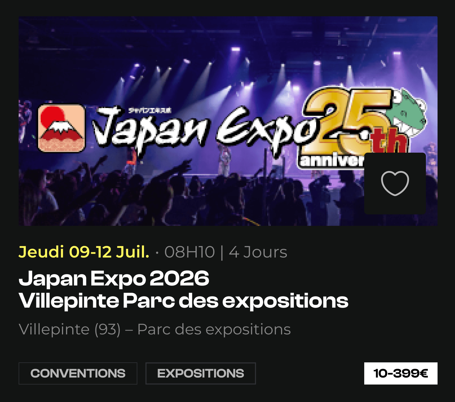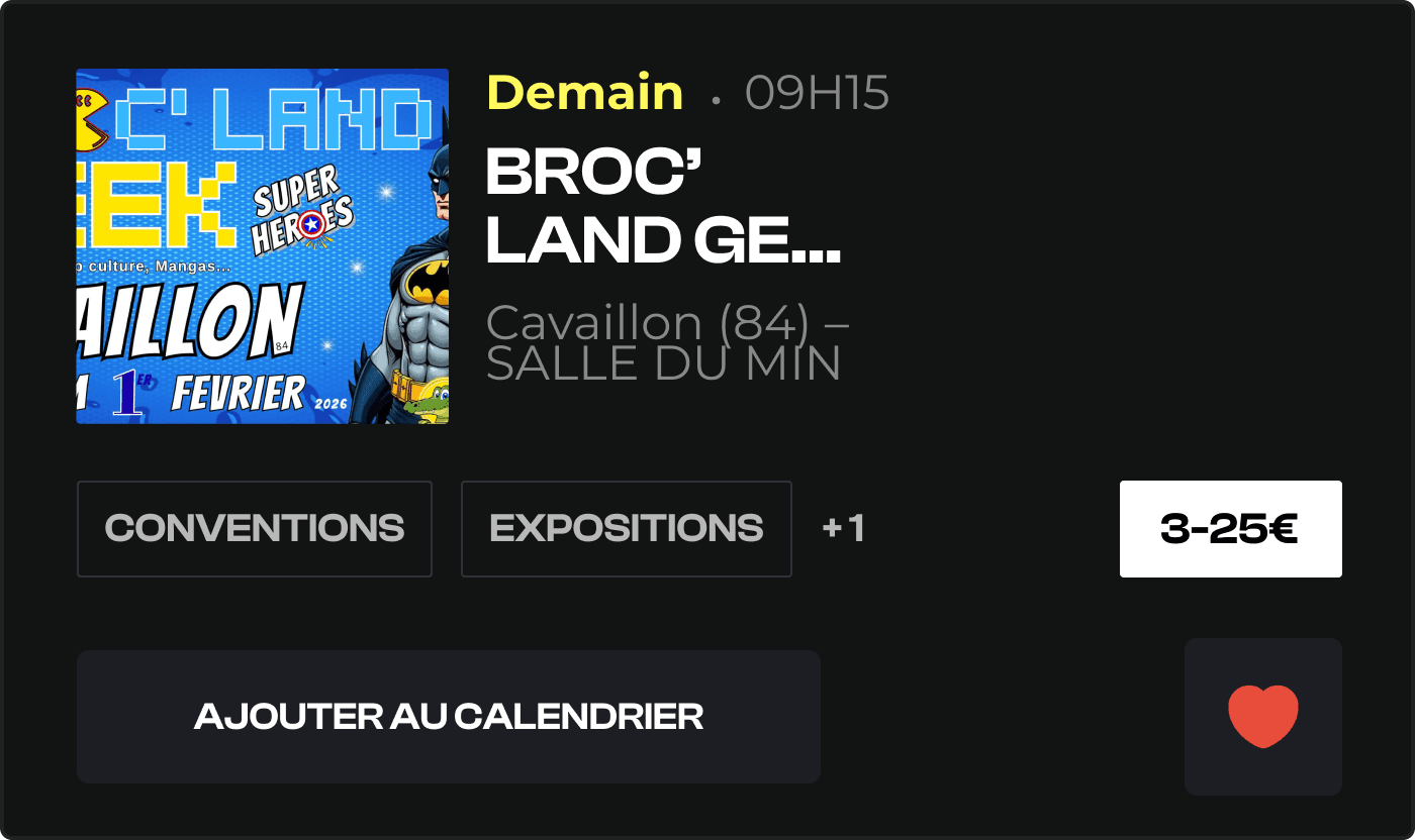Découvrez certains des événements les plus populaires à venir en France tels que des conventions, expositions, brocantes, spectacles & soirées.