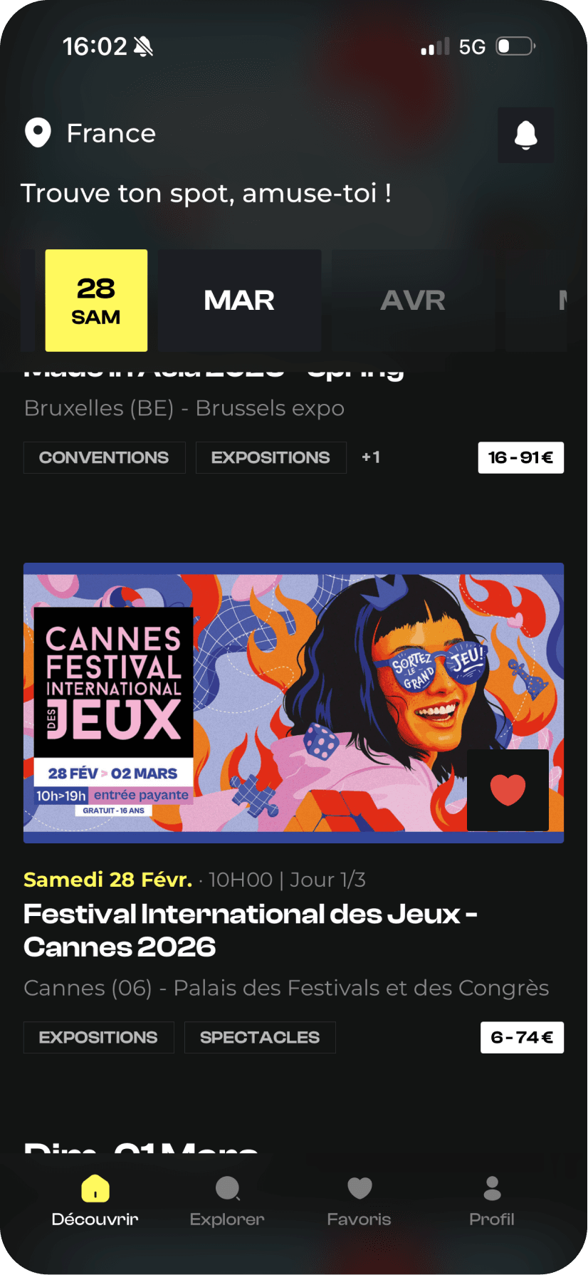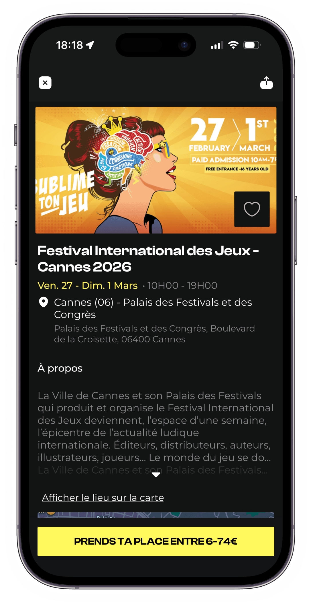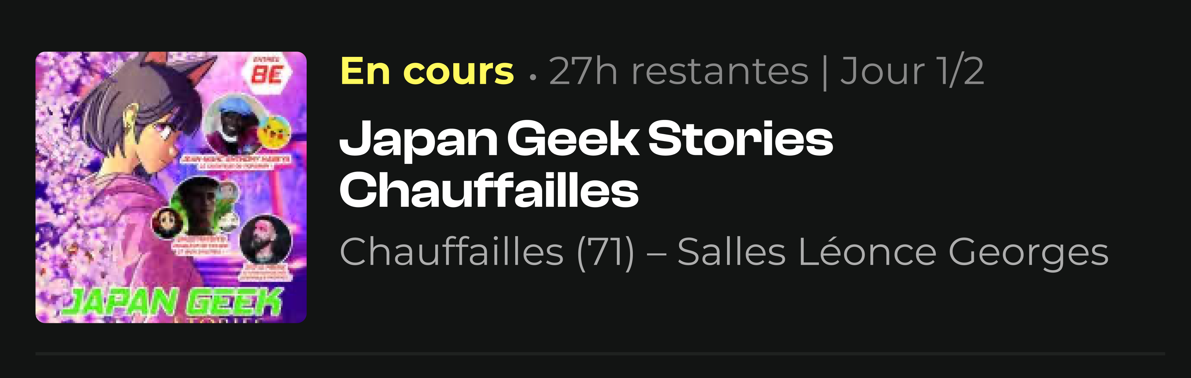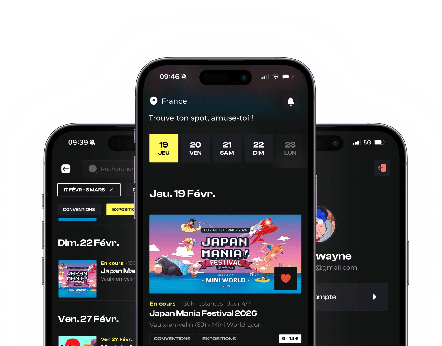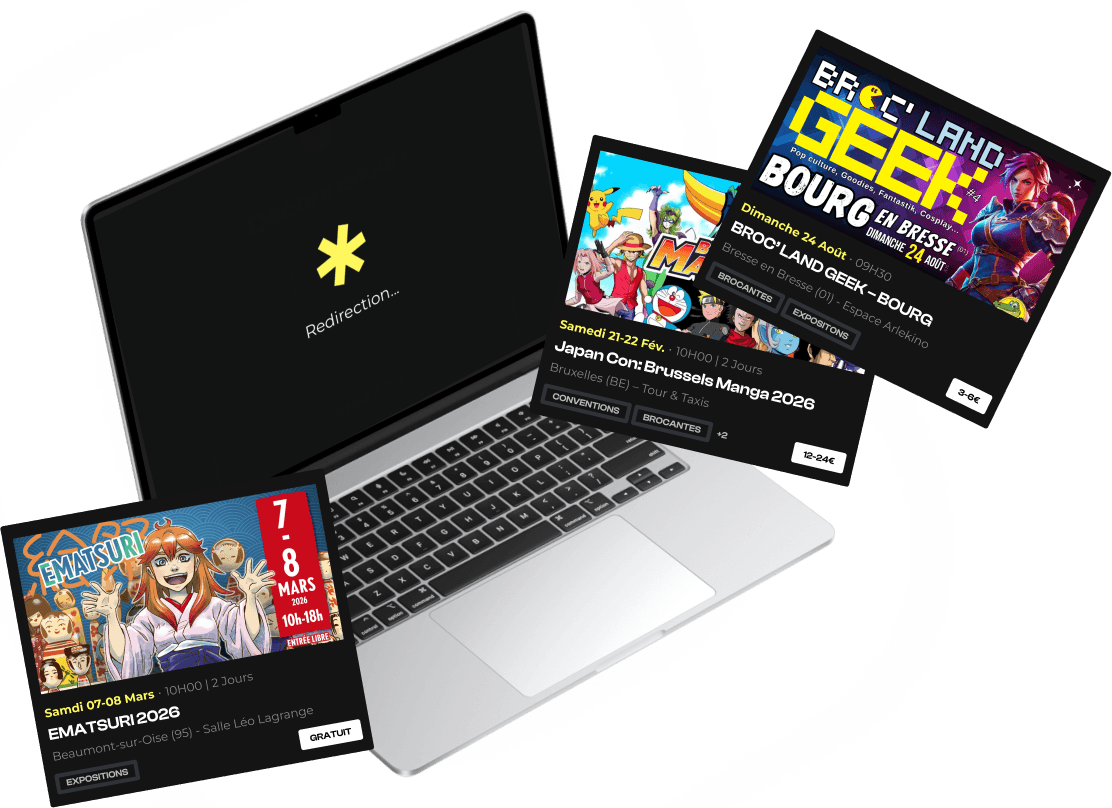 L' application événementielle qui rend la découverte d’évènement GEEKS et OTAKUS plus simple que jamais ! Un lien directement vers la billetterie et des fonctionnalités intelligentes pour être au courant et ne pas manquer les événements.