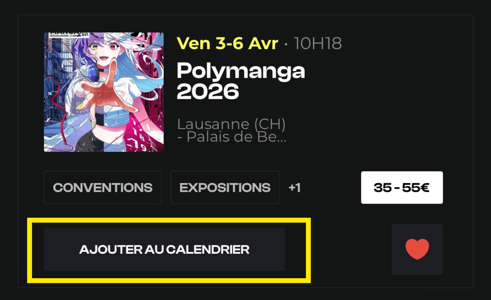 Clique sur Ajouter au Calendrier. Il faudra alors accepter la permission afin qu'on puisse le mettre dans ton agenda !